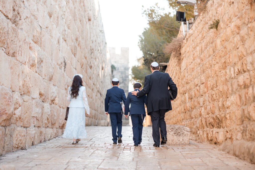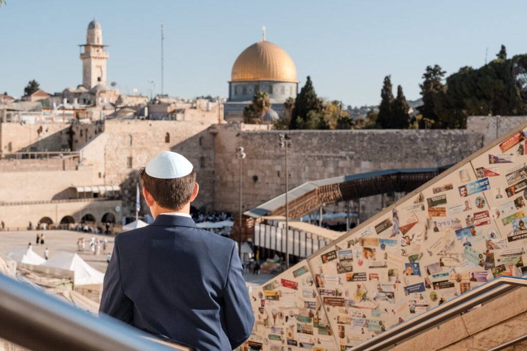 This point connects the photo session with the next part of the celebration — walking down toward the Dung Gate, the drummers’ procession, or the Western Wall ceremony.