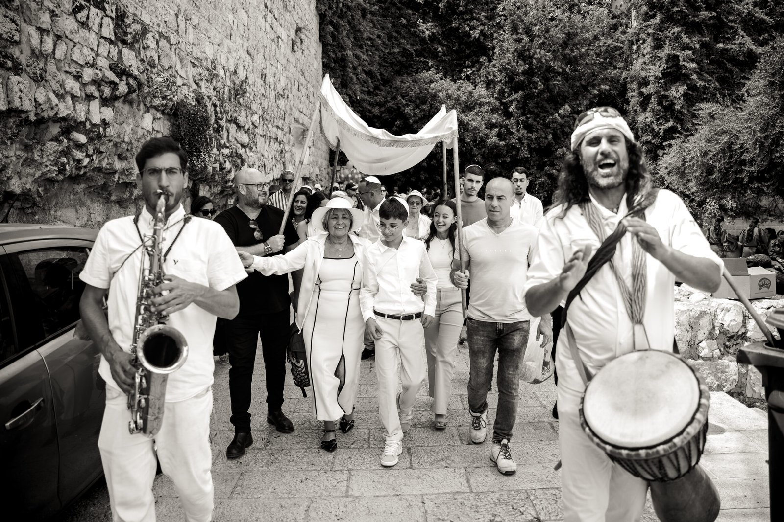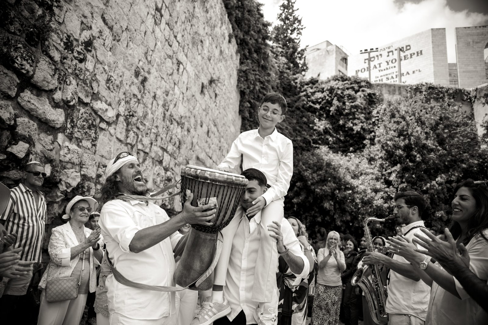 At Pais Photos, we photograph the drummers procession and the walk to the Bar Mitzvah ceremony at the Western Wall.
